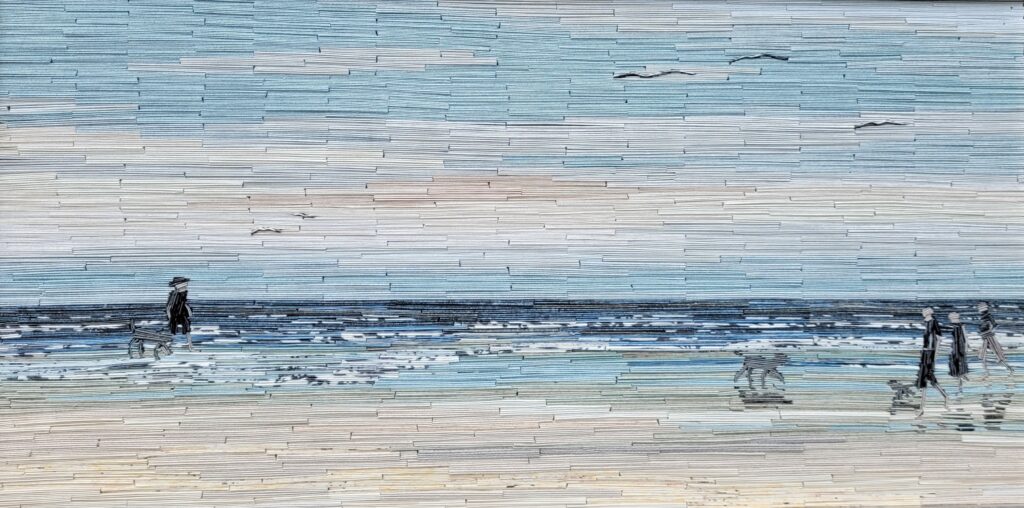 In der Malerei werden die Werke durch Farbe und Duktus gestaltet, so ist der Duktus die Falten, und die Farben die Tapeten. Der besondere Reiz bei der Tapete ist die Veränderung der Farbe und des Musters durch die Faltung. Es entsteht ein neuer Charakter der Tapete. Die Wirkung ist haptisch, weich oder kantig, was dem Ausdruck des Dargestellten entspricht, und ein nicht greifbares Gefühl vermittelt. Es entsteht eine Vielfalt an Farben, die durch die Aneinanderreihung diverser und in sich gemusterten Tapeten. Meine Vorstellung des kompletten Bildes wird durch reihenweises abscannen umgesetzt. Dadurch kreiert sich eine neue Sichtweise auf die Dinge.